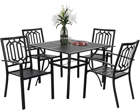 Amazon Com Phi Villa 5 Piece Outdoor Patio Dining Set Club Bistro Bar Sets Steel Frame Slat Larger Square Table With 1 57 Umbrella Hole 4 Outdoor Swivel Rocker Chair Garden Outdoor from m.media-amazon.com Find patio dining sets at wayfair. 5 piece outdoor dining set. 1 dining table and 2 chair. Entertain guests in your upgraded backyard getaway with a full outdoor find the perfect place to dine on balconies or smaller spaces with outdoor bistro tables. Shop birch lane for farmhouse & traditional outdoor bistro & dining sets, in the comfort of your home. 5 piece dining sets under $1799. 5 west elm soleil metal outdoor bistro dining set. The features include a mesh back and seat rest and the table also features a patio umbrella opening.